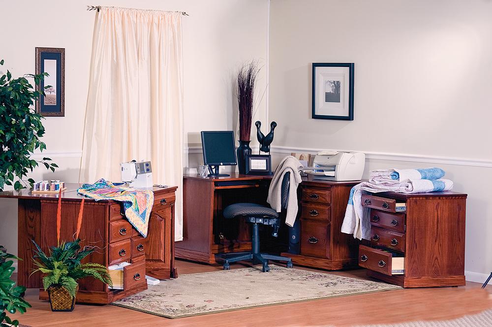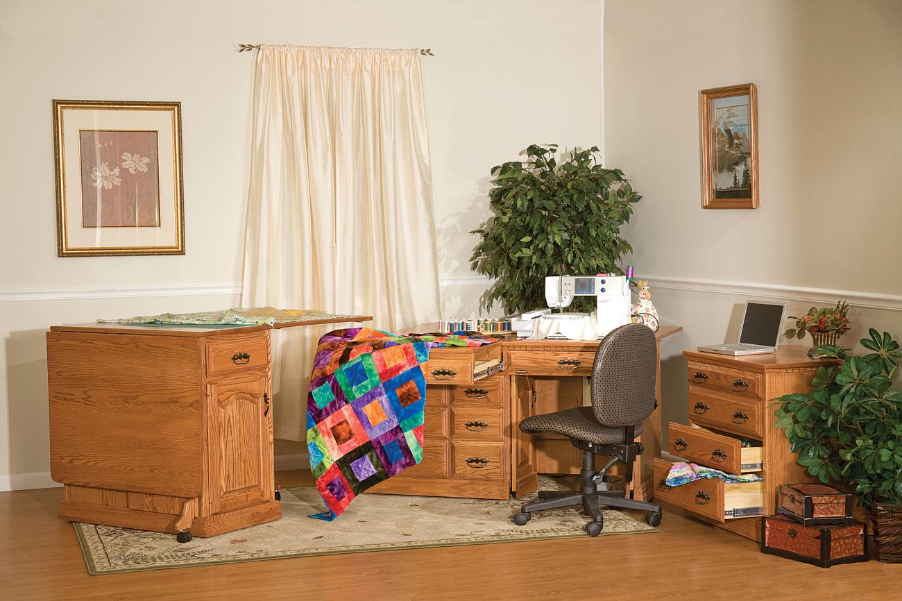 Gristmill builds a chest of drawers to give you more space to organize. We can design this set of drawers to match the other furniture in your sewing room. Do you prefer the chest of drawers attached to your sewing machine cabinet, or would you like a stand-alone unit? Either way, we’ll be happy to serve you.